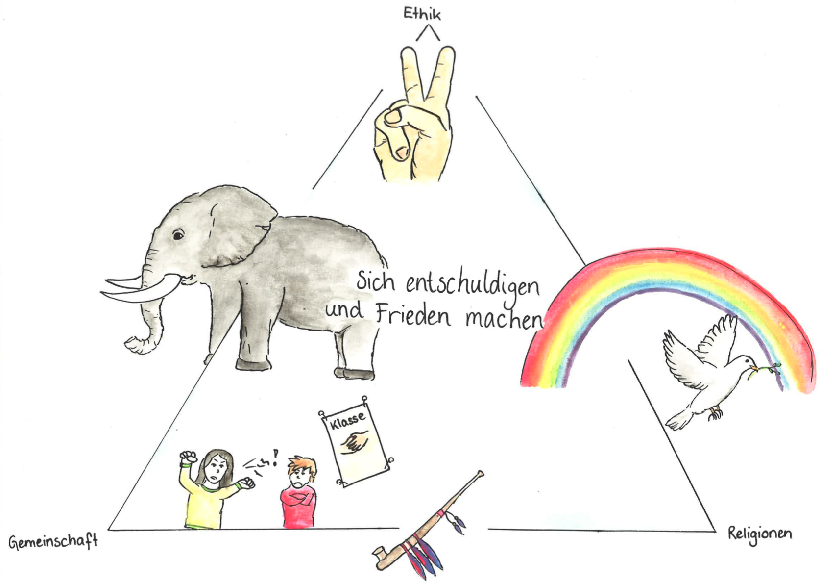 Kinder streiten sich oft und schieben sich gegenseitig die Schuld in die Schuhe. Sich zu entschuldigen ist oftmals nicht einfach und braucht Überwindung. Durch das Thematisieren des «Frieden-Machens» eignen sich die Kinder Wissen an, das sie im Alltag anwenden können. Bei ihrem nächsten Streit erinnern sie sich im besten Fall daran und können den Streit schlichten. In der Unterrichtseinheit werden Fallbeispiele mit der Klasse besprochen und es wird versucht, diese mit Hilfe des «Versteh-lefanten» gemeinsam zu lösen.